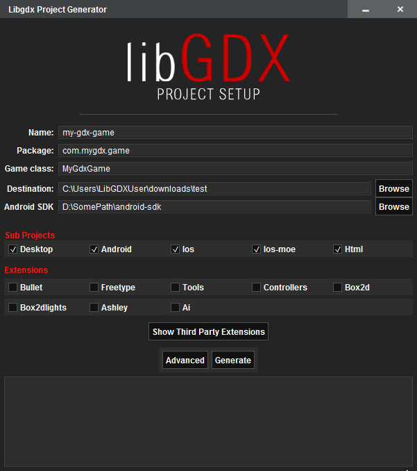 libGDX 官方有提供一個簡單的工具可以用來建立新專案。