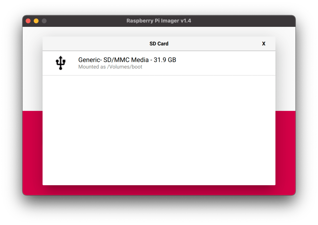 選好 OS 之後,點選 CHOOSE SD CARD 就可以選擇我們要寫入的記憶卡。
